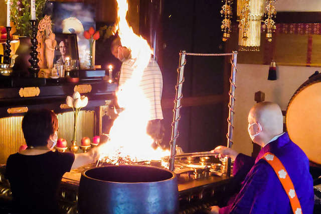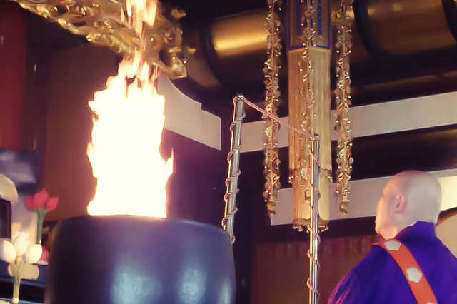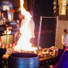 炎の近くで自分自身も深く祈ったり、お願い事をしたりできる【参加型の護摩】が福寿観音の特色。