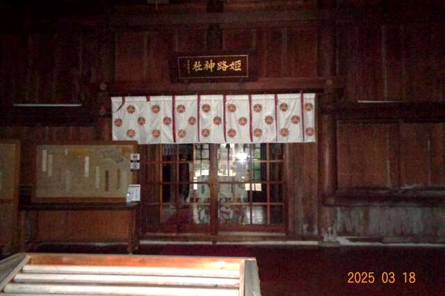 名称姫路神社ヒメジジンジャ全国兵庫の神社・寺院姫路市[社格]旧キュウ県社ケンシャ御祭神※[主神]酒井正親命サカイマサチカノミコト[合祀]酒井家サカイケ歴代藩主レキダイハンシュ写真をもっと見る姫路神社投稿日:2025年9月6日賓客姫路神社投稿日:2025年9月6日賓客姫路神社投稿日:2025年6月15日賓客姫路神社投稿日:2025年6月15日賓客姫路神社投稿日:2025年6月15日賓客姫路神社投稿日:2023年11月9日周五郎祭り・行事一覧(2025年度)※時 期内 容4月12日(土)例祭鎮座地※〒670-0012 兵庫県ヒョウゴケン姫路市ヒメジシ本町ホンマチ83最寄駅・路線京口駅 から徒歩14分(1.1km)経路確認■JR播但線姫路駅 から徒歩17分(1.3km)経路確認■山陽新幹線■JR神戸線(神戸~姫路)■JR山陽本線(姫路~岡山)■JR姫新線(姫路~佐用)■JR播但線■山陽電鉄本線最寄のバス停・路線姫山公園北(医療センター・博物館・美術館)バス停 から徒歩3分(193m)経路確認□3□4□61姫山公園南バス停 から徒歩4分(291m)経路確認□3□4□61野里門バス停 から徒歩4分(295m)経路確認□3□4□61付近の神社長壁神社オサカベジンジャ徒歩 3分(185m)兵庫縣姫路ヒョウゴケンヒメジ護國神社ゴコクジンジャ徒歩 6分(436m)白川神社シラカワジンジャ徒歩 6分(458m)射楯兵主神社イタテヒョウズジンジャ徒歩 8分(603m)赤鹿アカシカ稲荷神社イナリジンジャ徒歩 8分(616m)水尾神社ミズオジンジャ徒歩 9分(641m)関連リンク兵庫県神社庁 姫路神社のページ姫路神社のウィキペディア外部リンク兵庫県神社庁神社本庁御作法神社の参拝作法を見る
