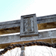 旧社殿跡には扁額や古灯篭、狛犬が残されています、