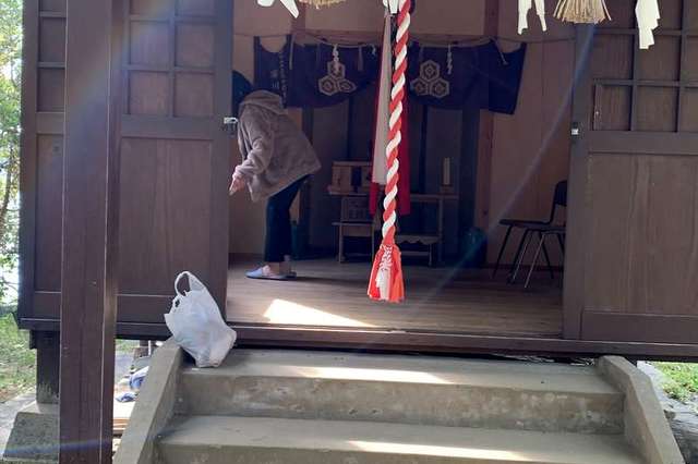 石階段は狭い為、気をつけて昇降されて下さい。お賽銭箱が設置はされておりませんが、小窓の中へお入れ下さい。御朱印が近くの海釣りcafeにございますが、オーナーが不在が多い為、ご希望の方は郵送させていただいております。神主様の直筆の御朱印です。送料込み1000円です。鯨の珍しい御朱印です。