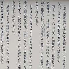 投稿日:訪問日:評価:5“恋人たちの聖地?”お社は、公園から下って行った海のすぐ傍に在ります。地域の方が丁寧な管理をされていらっしゃいます(社務所はありません)。 おそらく和歌山から勧請されていると思いますが、「縁結び」をうたうのは大国主命にあやかってか町興しなのか…